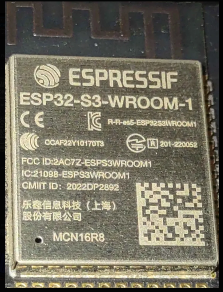 the only corect ESP chip is the ESP32-S3-WROOM-1 type N16R8 (16MB Flash, 8MB Octal SPI PSRAM)